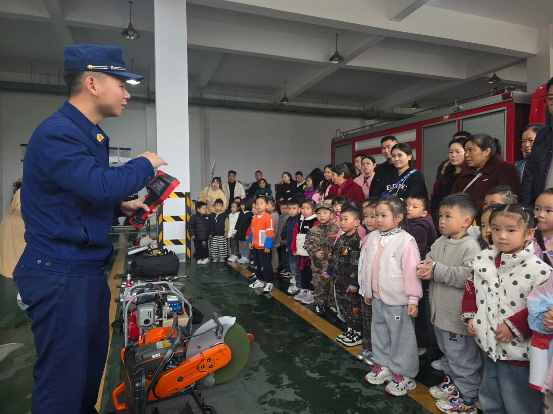 在第34个全国消防安全日到来前夕,学前教育管理部组织140名幼儿及家长,共同走进青白江区仁寿路专职消防救援站,开展了一场以“走进火焰蓝,致敬逆行者”为主题的实践教育活动。